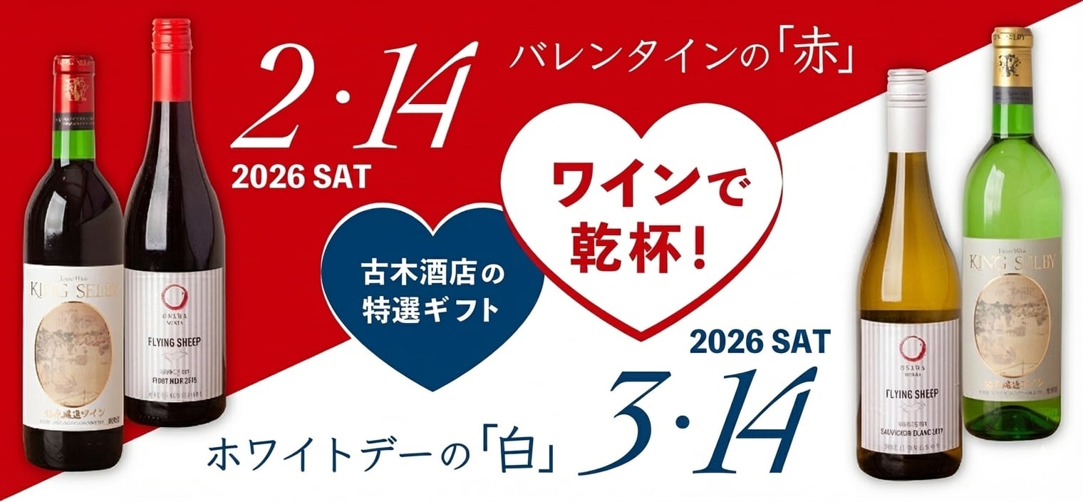 古木酒店の一押し、大阪府柏原市にある老舗ワイナリー「カタシモワイナリー」が手掛ける、大阪の風土で育まれたワインのセットです。 111年以上の歴史を持つこのワイナリーは、日本のワイン文化を牽引してきました。 このギフトセットでは、大阪産のぶどうを100%使用した、こだわりの赤と白ワインを飲み比べいただけます。 ◇〈カタシモワイナリー ギフトセット〉柏原醸造ワイン 赤白 720ml×2本 ●キングセルビー 柏原醸造 赤ワイン 辛口 720mlx1本● <特徴> マスカット・ベーリーAとメルロを使い、オーク材の木樽で寝かせています。マロラクティック発酵による、まろやかな熟成感をお楽しみください。 ◆マロラクティック発酵 アルコール発酵の後、乳酸菌がワイン中のリンゴ酸を乳酸と炭酸ガスにする発酵をさします。酸味の角が取れてやわらかな味わいになり、発酵過程で様々な化合物が生成されるために複雑な香味(バター、バラの花、ナッツなど)が加わります。おもにほとんどの赤ワインでこれを行うが、発酵の方法は醸造元によって異なるため、銘柄ごとの個性が生まれます。 瓶容量 720ml  栓 コルク 葡萄品種 メルロ、マスカットベーリーA 国産葡萄100% テイスト 辛口 【辛○●○○○○甘】 ●キングセルビー 柏原醸造 白ワイン 辛口 720mlx1本● <特徴> やわらかい口当たりで、辛口。鯛の子の煮つけや、きんぴらごぼうなどの和食とも相性の良い味わいです。6〜8℃に冷やしてお召し上がりください。 瓶容量 720ml  栓 コルク 葡萄品種 甲州 国産葡萄100% テイスト やや甘口 【辛○●○○○○甘】 <カタシモワイナリー> 明治初期、創業者の父である高井理三郎が堅下(大阪平野)を開墾。1912年、創業者の高井作二郎が堅下産ワインの醸造に成功。除草剤を使用せず、可能な限り有機肥料を使うことにこだわった、最高のワイン作りに生涯を捧げました。その精神と伝統を継承し、高品質なワインの生産によって数々の賞を受賞しています。2001年には、国産グラッパの生産も始まりました。 ギフトにおすすめ 地元大阪で造られたこのワインセットは、贈り物に特別な意味を添えます。大阪の味を贈りたい方や、ワイン好きの方へのプレゼントに最適です。おしゃれなギフト箱に入っており、お祝いや手土産にも喜ばれること間違いなしです。 大阪の風を感じられる、この特別なワインセットで素敵な時間をお過ごしください。