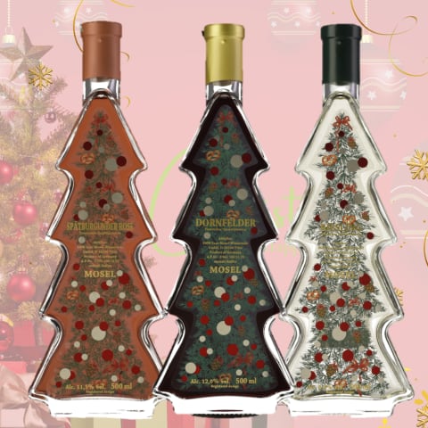 クリスマスシーズンのギフトやパーティーを彩る、遊び心あふれる特別なワインセットです。ドイツの銘醸地モーゼル地方のぶどうを使い、熟練の醸造家が丁寧に造り上げました。ユニークなクリスマスツリー型のボトルが、テーブルを華やかに演出し、プレゼントやサプライズにぴったりです。